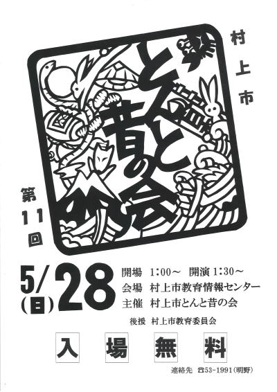 | 2023年5月24日(水) 「誘客推進」業務 5月28日(日)に「村上市とんと昔の会」の発表会が開催されます(^o^)丿 開場:午後1時〜 開演:午後1時30分〜 会場:村上市教育情報センター 「入場無料」ですので皆様のお越しをお待ちしております(^J^) 3.5 |  ポスター | |||