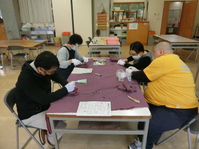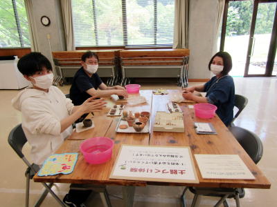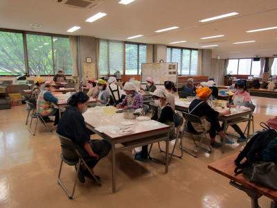 | 2023年5月25日(木) 「管理運営」業務 燕市から「分水小学校6年生」の皆さんが「修学旅行」に来てくれました(^o^)丿 2班に分かれて、「体験」と「見学」を交互に行いました(^J^) 「まが玉」、「土器」を作りました(^<^) 3.5 |  「まが玉」作り | |||