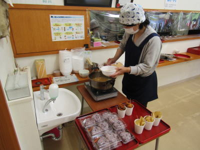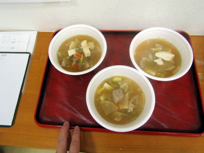 |  豚汁(100円) |  黒米のヘラ餅風(100円) | |||
