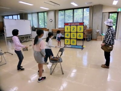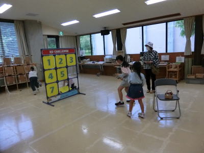 | 2023年5月7日(日) 「自主事業」業務 「縄文ピクニック」最終日です(^o^)丿 あいにくのお天気でしたが賑わいました(^J^) 雨なので急遽、室内で「ストラック・アウト」を設置しました(^o^) 「お手玉」を当てます(^◇^) 3.5 |  ストラック・アウト | |||
