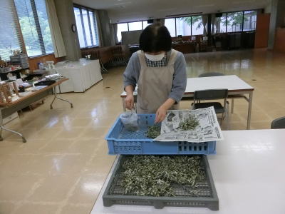 | 2023年6月3日(土) 「管理運営」業務 「火おこし」体験用に「モグサ」を作りました(^o^)丿 敷地内の「ヨモギ」を乾燥させて作りました(^J^) ヨモギには精油成分があり、火つきに効果があるそうです(^<^) 3 |