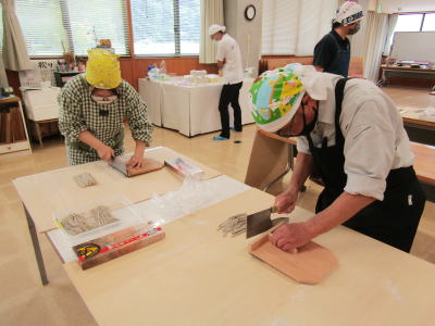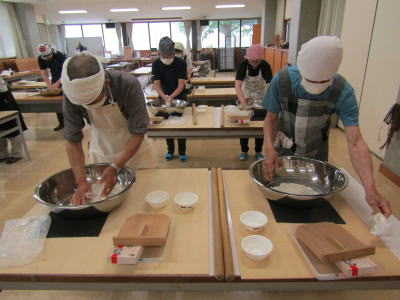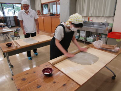 | 2023年6月8日(木) 「指定事業」業務 「そば打ち体験」が開催されました(^o^)丿 河崎館長と他の施設の職員も「研修」として数名参加しました(^<^) 初めて方でも上手にお蕎麦が出来上がりました(^J^) 館長は「切る」時に少し太くなったみたいです(^o^) 3 |