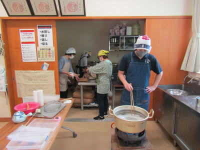 2023年6月2日(金) 「伝統文化」業務 「塩引き鮭」を干す「干し場」の修繕をしました(^o^)丿 私は「干し場」の「吊り木」の増設し、「釣り縄」を全部新しくしました(^J^) 「屋根」や「外壁」部分の補強もしました(^<^) ※写真では写っていませんが5名で作業しました(^◇^) 3 |