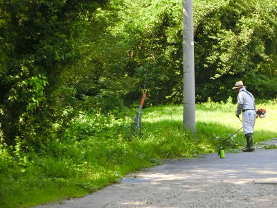 | 2023年7月21日(金) 「管理運営」業務 施設管理員が敷地内の「草刈り」をしました(^o^)丿 今年は「イノシシの被害」が少ないです(^J^) 今年は周囲を囲う網に「イノシシが嫌う匂い」の出るプレートを沢山設置しました(^◇^) 3.5 |