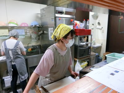 | 2023年7月2日(日) 「食堂」業務 2023年3月31日付けで退職された「本間」さんがお手伝いに来てくれました(^o^)丿 「やまびこ食堂」では「天ぷら」等の調理に「即戦力」で大助かりです(^J^) 辞めてから「若返った」感じです(^◇^) 「クラフトバック」の作り方も勉強されていかれました(^o^) 3.5 |