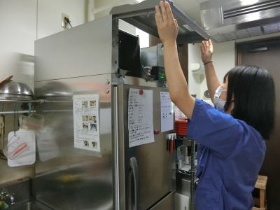 2024年6月21日(金) 「食堂」業務 「ホシザキ北信越(株)」のサービスサポート係の方が定期点検にこられました(^o^)丿 「やまびこ食堂」の厨房にある「冷凍冷蔵庫」を点検されました(^J^) 「フィルター」清掃、「循環液」温度、冷却水等の確認をされていました(^<^) 特に異常はなかったです(^o^) 3.5 |