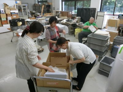 | 2024年6月29日(土) 「誘客推進」業務 夏・秋の企画展「奥三面(おくみおもて)の瘤付(こぶつき)土器」の準備をしています(^o^)丿 別の保管場所から運び込みました 今回は「瘤付土器」にスポットを当てています(^J^) 開催期間:7月13日(土)〜11月24日(日) 3 |