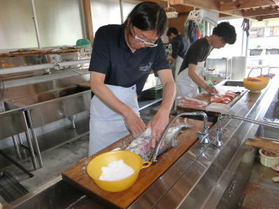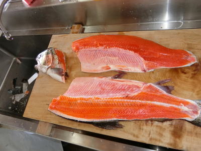 | 2024年6月3日(月) 休館日 「イヨボヤ未来プロジェクト」業務 「養殖」のお魚を調査研究しました(^o^)丿 今回は「佐渡サーモン」と「アルプスサーモン」を使いました(^J^) 「内臓」を取り出した魚と、「塩引き」加工した魚を「冷凍保存」しました(^J^) 「刺身」と「塩焼き」も試食しました(^<^) 3.5 |