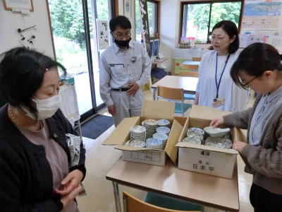 2024年6月6日(木) 「食堂」業務 村上市内の料理研究家の「本間キト」様に「食器」を頂きました(^o^)丿 「石井」次長が届けてくれました(^J^) 以前、「料理のイベント」で使った物が沢山有るそうです(^J^) 「小皿」が不足していたので助かります<m(__)m> 4 |