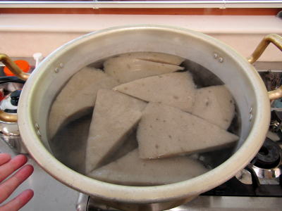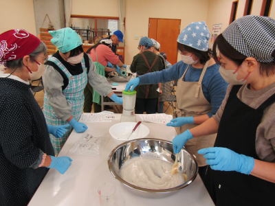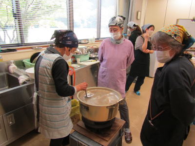 | 2025年10月30日(木) 「指定事業」業務 「コンニャクづくり」体験が開催されました(^o^)丿 「コンニャク芋」から作りました(^J^) 「凝固剤」を入れて、かき混ぜると「コンニャク」の香りがしてきました(^<^) 型に入れて「カット」して茹でました(^J^) 少し冷まして完成です(^◇^) 3.5 |