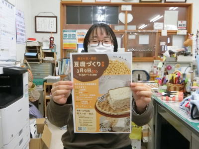 2025年2月24日(祝・月) 「指定事業」業務 「豆腐づくり」が開催されます(^o^)丿 参加枠が残りわずかになりました(^J^) 日時:3月9日(日)/9時30分〜12時 参加費:600円 定員:12名 3.5 |