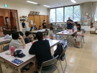 | 2025年7月24日(木) 「管理運営」業務 「さんぽく小学校」に館長と職員が「出張講座」に出掛けました(^o^)丿 教室には「エアコン」と「水道」が整備されていました(^J^) 親子「30」名と、担任の先生とで、「31個」作りました(^<^) 今月末まで「教室」で自然乾燥後、引き取りに行きます(^o^) 3.5 |
