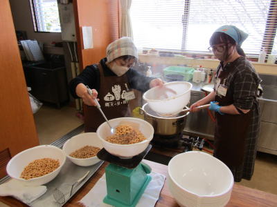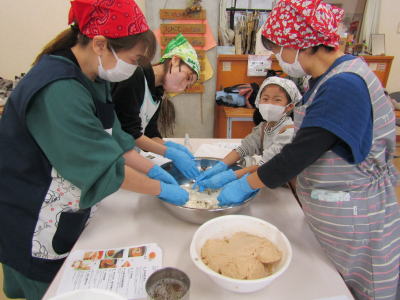 | 2026年3月1日(日) 「指定事業」業務 「味噌」づくり体験を開催しました(^o^)丿 煮た大豆を「すり鉢」でつぶす作業が大変そうでした(^J^) 「潰した大豆」に「塩」と「米麹」を混ぜました(^<^) 出来上がり分量(お持ち帰り)はお一人「約1キロ」になりました(^<^) 3.5 |