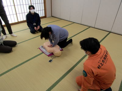 2026年3月10日(火) 「管理運営」業務 「普通救命講習会」が開催されました(^o^)丿 「村上市民ふれあいセンター」の和室で行いました(^J^) 「心臓マッサージ」と「AED]の使い方を教わりました(^<^) 「約10名」が参加し、当館からも2名参加しました(^o^) 3.5 |