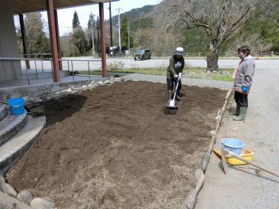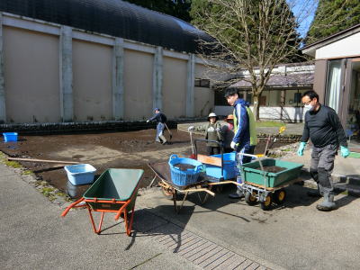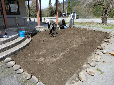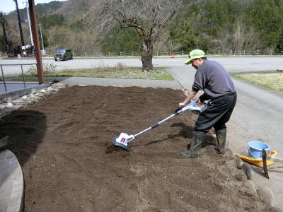 | 2026年4月16日(木) 「管理運営」業務 玄関の花壇を整備しました(^o^)丿 「クワ」や「機械」を使い、耕しました(^J^) 出てきた「石」を根気よく集めて処分しました(^<^) 今年も「マリーゴールド」を植える予定です(^◇^) 3 |