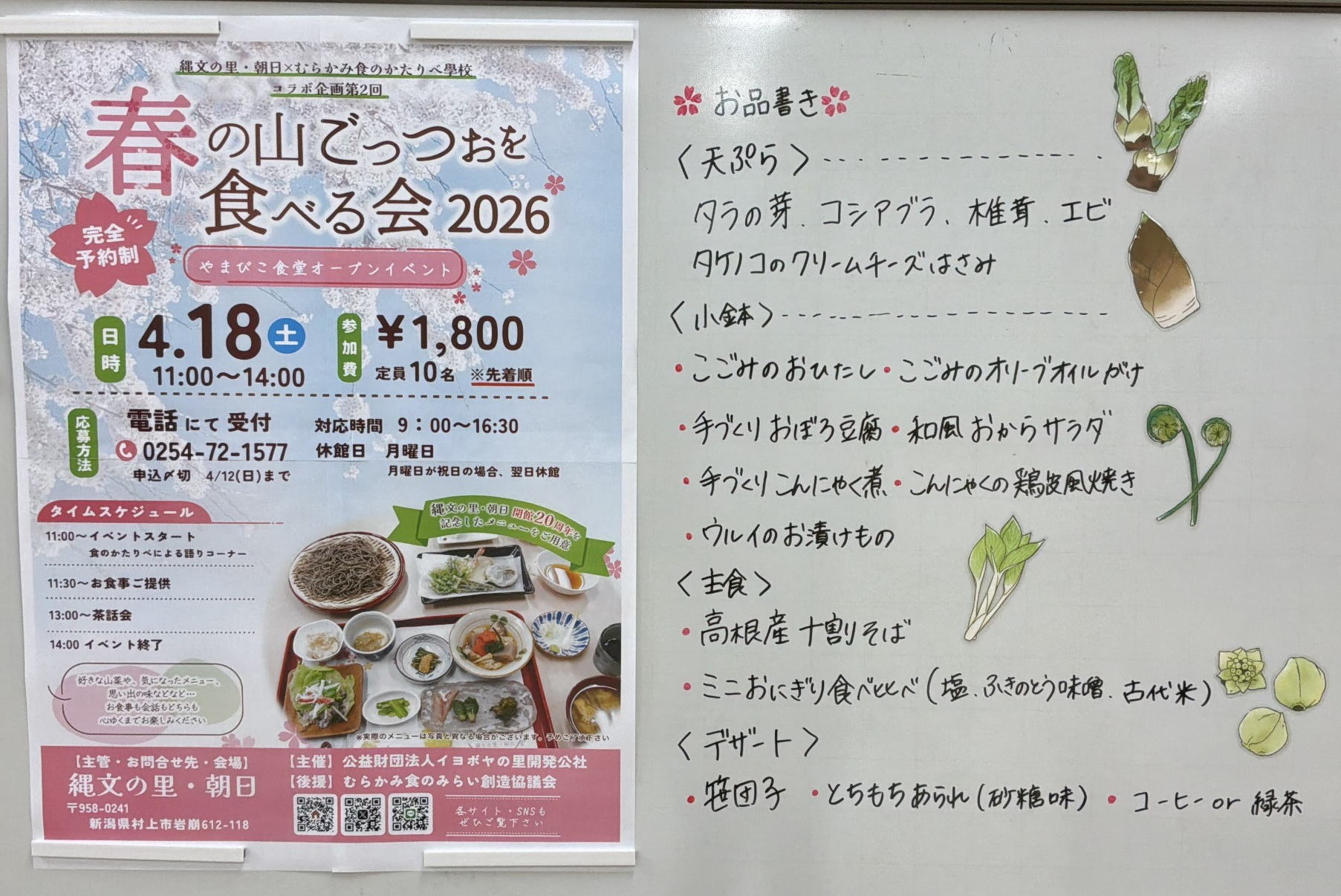 | 2026年4月18日(土) 「指定事業」業務 食堂プレオープン「ごっつおを食べる会」が開催されました(^o^)丿 地元の食材を使いふんだんに使う「献立」を考えました(^J^) ※「天ぷら」のエビ以外 杉の木」を削った「手作り箸」、3Dプリンターで作った「箸置き」など、小物にも工夫を凝らしました(^o^) 午後からは「茶話会」も開催しました(^<^) 3.5 |