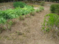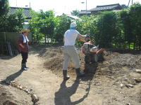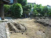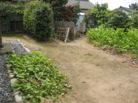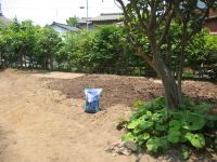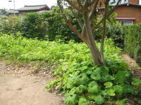 2009年5月25日 成田家の「家庭菜園」実現に向けて「開墾作業」がはじまりました(^o^)/ まず、土を掘り起こして雑草の「根っこ」を取り除きました(根気のいる作業でした) ※「1cm程の根っこ」でも残ると、再度、芽が出るそうです(>_<) 柿の木の下には「ミョウガ」を植えました。 (^◇^) |
