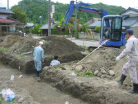 | 2009年5月14日 文化行政課の方が「成田家」前の「空き地」の発掘調査をされていました(^o^)/ 「大判」・小判」は出ませんでしたが、江戸時代の品物が数点出てきました(^ム^) ※この空き地は「成田家」でのイベント等の際に「臨時駐車場」としてお借りできるよう文化行政課の方にお願いしました(^◇^) |