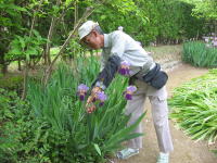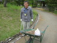 | 2009年5月8日 「まいづる公園」の清掃担当の横井さんです(^o^)/ 基本的に月曜日と金曜日を「2人交代制」で「公衆トイレ」と「武家屋敷」の「定期清掃」をお願いしております(^ム^) 清掃業務の他、イベント等、色々な情報交換をさせていただきました(^◇^) |