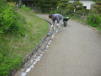 | 2009年5月16日 今日の様子です(^o^)/ 屋敷の周りの砂利に生えた雑草を取られていました(^ム^) 各施設ともに「雑草」との戦いは続きます(>_<) |