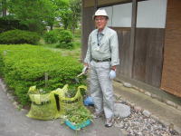 ![]() 「ボランティア」の方と造園業者さんと係長 |