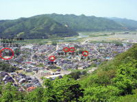 | 2009年5月18日 休日でお天気が良かったので「お城山」(村上城跡)」に登りました(^o^)/ ふもとの駐車場から頂上まで「18分」で登れました(^ム^) 展望台から「武家屋敷周辺」の写真を撮りました。(^◇^) |
