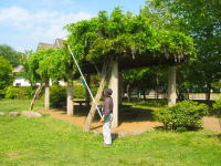 2009年5月20日 管理人の大滝さんが「藤」の剪定をしてくれました.(^o^)/ 見てると簡単そうですが、実際なれないと難しい作業です.(^ム^) |