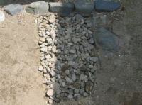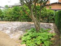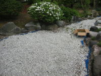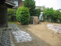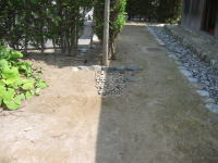 | 2009年5月21日 昨日、造園業者さんに、「庭の排水口が詰まってるよ\(◎o◎)/」と言われました。 その場所を掘り返して、土を捨て、玉所利を戻しました(^o^)/ |