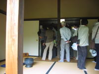 | 2009年5月31日 『重要文化財(国指定)若林家住宅 活用事業』(四日目) 「新緑の若林邸茶会」が開催されました(^o^)/ 今日は「石州流」の皆様でした(^◇^) ※「石州流(せきしゅうりゅう)」は片桐石州(貞昌)を流祖と仰ぐ流派です。 受付の美人「茶ガール」のおかげで今日も「満茶(員)」でした(^◇^) |
