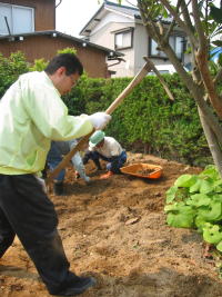 | 2009年5月20日 造園業者さんが「害虫検査」と「家庭菜園」(準備中)の様子をみに来られました.(^o^)/ 「5月25日」9時からに開墾作業をする予定です。(^◇^) ※当日、ボランティア募集中です(^o^)丿 ※「26日」⇒「25日」に変更しました。 |