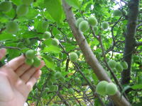 2009年5月26日 成田家の玄関前の「梅の木」に沢山の梅がなりだしました(^o^)/ 商工観光課長様が以前来られた時に『せっかくだから「梅酒」か「梅干し」でもつくって方がいいぞ』とおっしゃっていました。 (^◇^) |