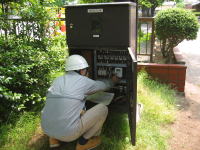 2009年5月27日 「まいづる公園」の外灯タイマー時刻を変更しました(^o^)/ 省エネの為、「日の入り」の時刻に合わせて「月に3回」変更します(^◇^) 今まで旧管理人さんの成田さんがボランティアで行っていました(^◇^) 操作方法を教えて頂きました(^◇^) |