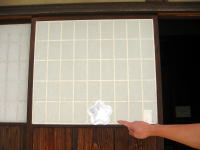| 2009年5月5日 藤井家住宅の玄関の障子に「タバコ」でイタズラがありました。 「花柄の障子」で応急処理しました。 ※何度も言いますが、現在、村上警察署の「重点パトロール」地区に設定されています。 ※何か情報が有ればご連絡くださいm(__)m |