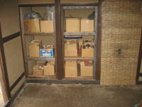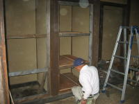 | 2009年5月8日 今日は、イヨボヤ会館で大活躍中の佐藤さんに「成田家」の土間に『棚』の作成をお願いしました(^o^)/ 「柱と壁」を傷つけないように、細心の注意をはらいながらの作業でした。 でも、さすが「元大工」さん、あっという間に完成しました(^◇^) |