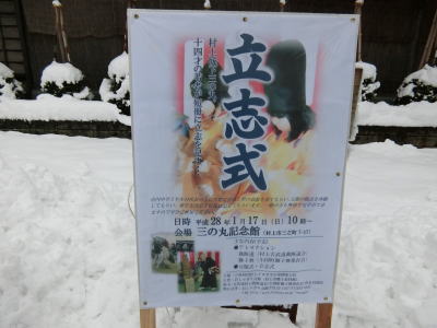 | 2016年1月17日(日) 立志式当日、今まで溜めこんでいた雪がどっと降り、一面銀世界(^o^)丿 朝一の仕事は、除雪から始まりました・・・ 新春にふさわしく、勢いのある獅子舞披露は、元服を迎えられる4名の生徒たちも圧倒されていました(^o^)丿 初めて見る截断道演武には、目が釘付け・・・ 父兄の方も「我が子のこんな素晴らしい衣装を身に着けたところは、七五三以来見たことがないので、貴重な体験をさせて頂き、ありがとうございました!!」 と、うれしいお言葉をいただきました(^◇^) 石田さん 根岸さん 五十嵐さん二名も楽しかった!(^^)!と喜んで下さいました!! これからも「立志式」長く続けて行けたらいいなと思います(^◇^) アトラクションにご協力いただきました村上古武道截断道会のみなさま、小国町獅子舞保存会のみなさま、衣装の着付け、手配をしていただきました角長さん、元服を迎えられました4名のみなさん、本当にありがとうございました!! 心から感謝申し上げます ![]() |