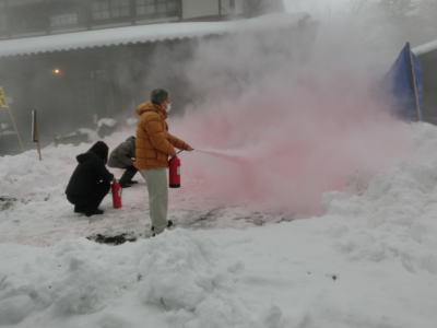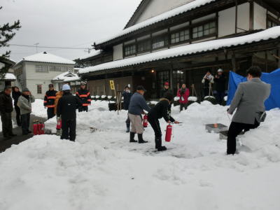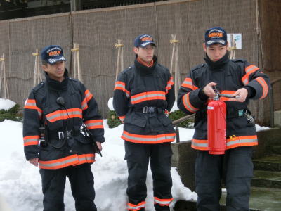 ![]() 今年は水を使った消火ではなく、本物の消火器での消火活動 |