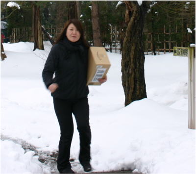 | 2016年1月8日(金) 今日の村上は、やっと冬らしくなりました ![]() やわらかい雪が朝から降り積もっています! 思わず喜んで外に出ちゃいました!(^^)!雪がなくて過ごしやすいですが・・・ 屋根や木に白いものがのると絵になりますね〜(^◇^)でも寒いっ! にっこりほほ笑む小嵜さんでした(#^.^#) |