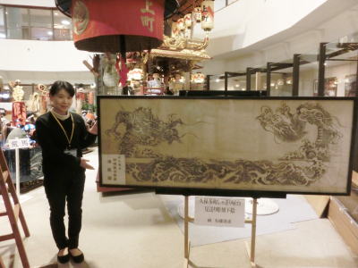 2016年1月5日(火) おしゃぎり展示場に有磯周斎下絵「涛龍圖」が展示されました ![]() この図を基にして、久保多町区しゃぎり屋台見送り彫刻が作られたそうです!! ガラス越しに、じっくり眺めてみてはいかがですか?(^◇^) |