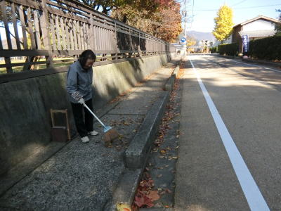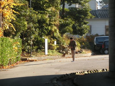 2016年11月8日(火) 「管理運営」業務 美女が朝から「落ち葉」と格闘中です(^o^)丿 車にひかれないように・・・ |