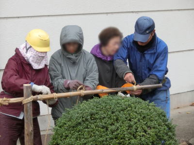 | 2016年11月16日(水) 「管理運営」業務 「まちづくり協議会」様主催の「冬囲い講座」が開催されました(^o^)丿 地元の造園業者の方が親切、丁寧に教えてくれました(^<^) 「縄の結び方」、「作業のコツ」など(^J^) 事業「468.3」→「471.1」SE 酒「666.9」→「667.7」SE 甘「83.2」→「85.3」SE 3 |