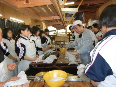 | 2016年11月18日(金) 「誘客推進」業務 「村上市観光協会」様に依頼され「塩引き鮭」の作り方を講習しました(^o^)丿 「村上桜ヶ丘高校」の生徒の皆さんが作った「塩引き鮭」は12月1日から始まる「越後村上鮭塩引き街道」に飾られます(^<^) 19日に「NHK(新潟版)」様のニュースで紹介されました(^J^) 事業「471.3」→「447.4」SE 酒「669.7」SE 甘「85.3」SE 3 |