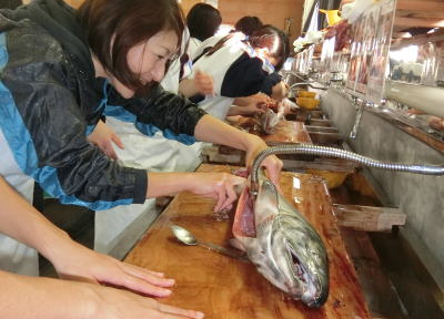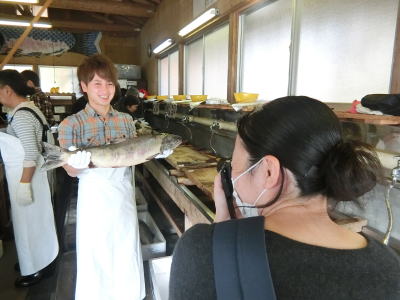 ![]() 越後村上三ノ丸流「塩引き鮭」作りの実演 |