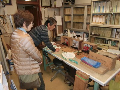 2016年11月10日(木) 「管理運営」業務 副館長が「三の丸記念館」に棚を製作中です(^o^)丿 「小道具」や「消耗品」を整理します(^<^) |