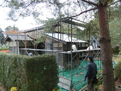 | 2016年11月4日(金) 「管理運営」業務 まいづる公園内の「岩間家」の屋根の修理(雨漏り)が始まりました。 あっと言う間に屋根まで「足場」が立ちました(^o^)丿 事業「424.8」→「426.9」SE 酒「609.2」→「610.2」SE 甘「78.3」→「78.6」SE 3.5 |