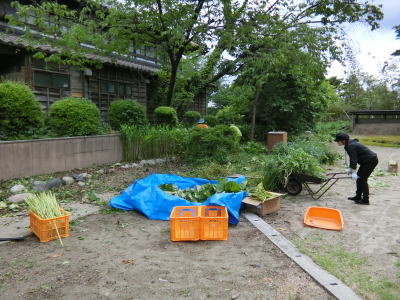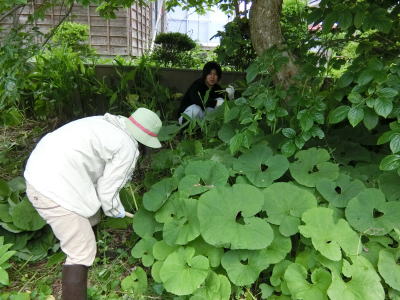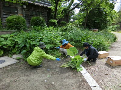 | 2016年6月1日(水) 「管理運営」&「収益拡大」業務 「春の庭 百景めぐり」が昨日で無事終了しました(^o^)/ 新たに若林家の庭園管理(草刈り)を兼ねて「フキ」を刈りました(^J^) ふれあいセンター、イヨボヤ会館からも応援に来てくれました(^o^) 武家屋敷「鮮国野菜」として「缶詰」にして販売します(^<^) 「竹の子」が不作だったので「フキ」でカバーします(^o^)丿 |