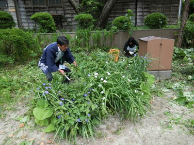 2016年6月8日(水) 「管理運営」業務 「若林邸ボランティアの会」の方が敷地内の草取りをしてくれました(^o^)丿 お客様への「お茶出し」の合間に作業をされています(^J^) 春先に「クリーン作戦」を行いましたが、あっという間に「雑草」が伸びてきました(>_<) 事業「75.0」→「77.0」SE 酒「153.7」→「155.6」SE 甘「19.1」SE 3 |