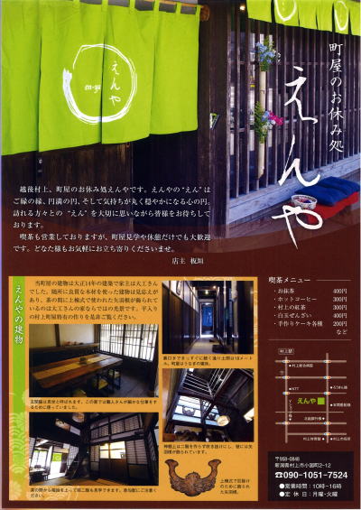 | 2016年6月15日(水) 「収益拡大」業務 町屋のお休み処「えんや」様にお邪魔しました(^o^)丿 当館への「誘客宣伝」のお願いをいたしました(^<^) 「バンバン宣伝してますよ」との事でした(^o^) 事業「91.1」→「93.9」SE 酒「165.3」→「165.8」SE 甘「23.0」→「23.5」SE 3.5 |