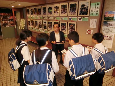 2016年6月17日(金) 「管理運営」業務 平林中学校の皆様が「巡検」に来られました(^o^)丿 各班ごとに「色々な質問」があり、桑原専門員が、その都度お答えしました(^<^) やはり「村上大祭」や「おしゃぎり屋台」関係の質問が多かったです(^ム^) |
