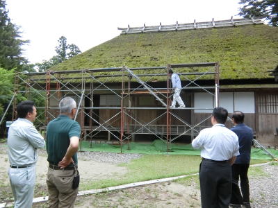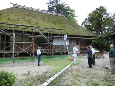 | 2016年6月20日(月) 「管理運営」業務 若林邸の屋根の修繕を行います(^o^)丿 現地に関係者が集まって工事内容の確認を行いました(^J^) さっそく、午後から作業が始まりました(^J^) ※コケの除去 事業「119.9」→「125.2」SE 酒「178.1」→「182.4」SE 甘「23.7」SE 3 |