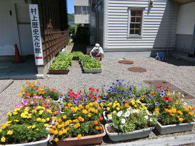 2016年6月27日(月) 「管理運営」業務 佐藤館長が「プランタの花」の手入れをされていました(^o^)丿 咲き終わった「プリムラ(多年草)」が来年もキレイに咲くように草取りなどをされました(^<^) |